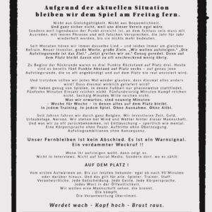 Pourquoi un boycott des fans ? « Pas par indifférence. Pas par commodité. Et certainement pas parce que nous ne nous soucions pas de ce club. Mais parce qu’à un moment donné, nous arrivons au point où nous devons arrêter de trouver des excuses, des phrases creuses et de fausses promesses qui se répètent année après année jusqu’à ce qu’elles ne signifient plus rien », déclare « Crew Neau ».