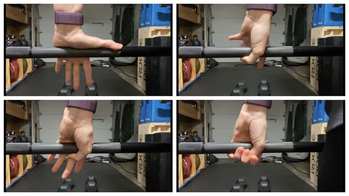 Une erreur courante – et une chose qui fait que la poignée de crochet fait beaucoup plus mal que ce qu’elle a besoin – est incorrectement placer votre pouce sur la barre. Ne pensez pas à votre pouce comme enveloppant sous le bar; Ce n’est pas comme une pince s’opposant à vos doigts. Vous ne voulez pas non plus saisir la barre avec Votre pouce, comme si le travail de votre pouce consistait à serrer la barre. Le but du pouce, dans une poignée de crochet, est de fournir une sorte de barrage routier pour empêcher les choses de glisser.