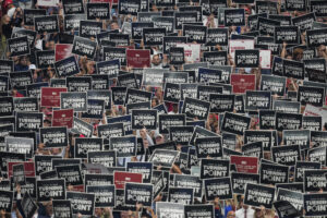 -Mega Event dans le stade de football: Des dizaines de milliers ont déjà déménagé au stade sportif de l’État de l’Arizona à Dawn. Ils sont tristes, mais aussi en colère. La mort violente et publique d’une personne qu’elle admirait l’a profondément ébranlée. La commémoration est un mélange de culte dans une «extension des méga-mégaques» évangélique et un rallye politique.