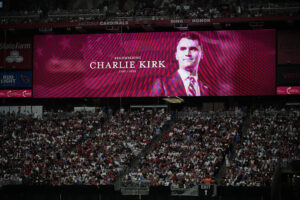 Dans un stade de football, la commémoration du tir Charlie Kirk devient un mélange de chagrin, de service et de rallye politique. Et les morts au « martyr ».