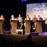 Table ronde à l’occasion de la remise du livre anniversaire le 2 décembre 2024 à l’Ancien Abattoir d’Eupen. De gauche à droite : Heinz Gensterblum, Günter Brüll, Elmar Keutgen, Frank Neumann, Ralph Lentz, Christoph Henkel, Elmar Brossel et le présentateur André Goebels. Photo : Patrick von Staufenberg