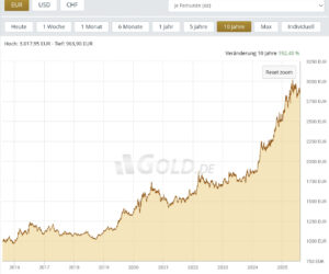 – Banques centrales en tant que moteurs de prix: Le prix par l’once Troy – 31,1 grammes – est actuellement un bon 3 300 $, presque deux fois plus élevé que 2022. Un prix décisif est les banques centrales de la Chine et d’autres pays qui souhaitent réduire la dépendance à l’égard du dollar et augmenter en permanence leurs réserves d’or. Selon une évaluation récemment publiée de la banque d’investissement américaine Goldman Sachs, le prix pourrait passer à 4 000 $ d’ici la mi-2026.