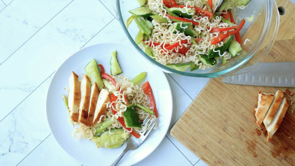 Cette salade de nouilles ressemble à un régal amusant, en fait assez pour deux portions et vous laissera des légumes à épargner et à utiliser pour d’autres repas. Les nouilles instantanées sont rapides à cuire et à ajouter le vrac nécessaire afin que vous vous éloignez de la table rassasiée. Les légumes en tranches fines apportent les nutriments, tandis que la vinaigrette brillante et savoureuse donne vie à tout le plat.