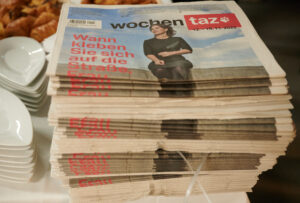 En tant que premier quotidien national d’Allemagne, le « taz » paraîtra ce vendredi pour la dernière fois sur papier en semaine. À partir du lundi 20 octobre, le quotidien de gauche s’appuiera sur des formats numériques tels que les e-papers et les reportages en ligne pendant la semaine. Le « wochentaz », qui paraît le samedi, continuera à être disponible sous forme imprimée.